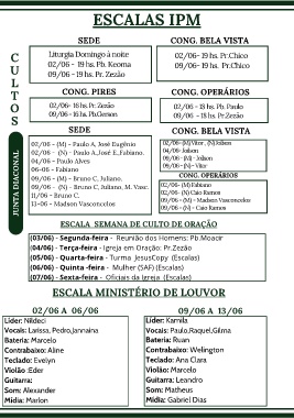 (07/06) - Sexta-feira - Oficiais da Igreja (Escalas)