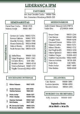 PRESBÍTEROS Paulo Renato Dias 99978-6576 JUNTA DIACONAL José Eugênio (E) 99924-5256